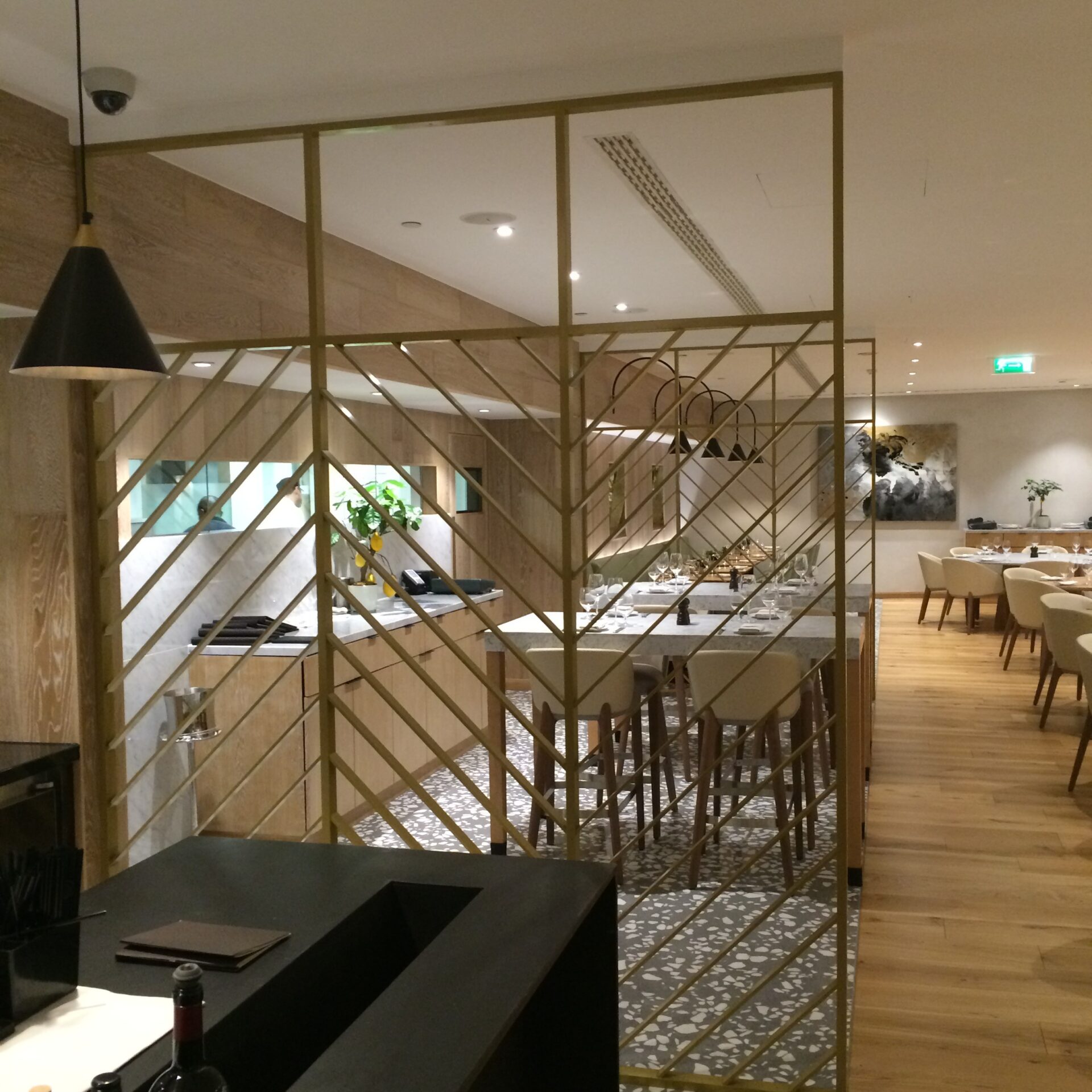 Our partners in this project, Fileturn, provided us with this photo of the privacy screens in situ, at Theo Randall’s restaurant at the Intercontinental. Bespoke metal hotel furniture at it’s best!